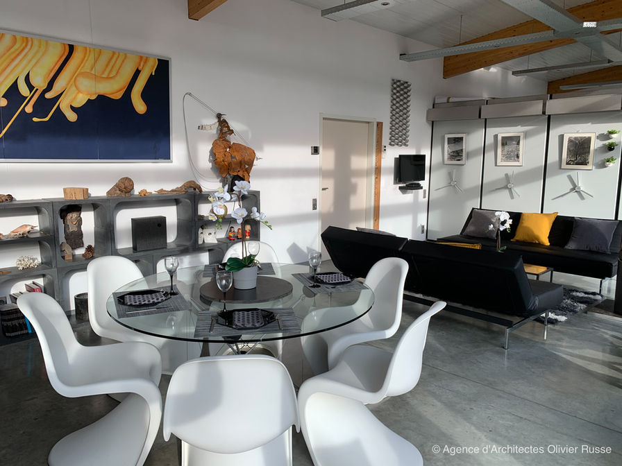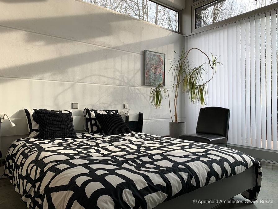 Ce projet d'habitation a été réalisé pour les parents de M. Russe, dans le but de créer une maison confortable pour leur retraite. La demande était claire : concevoir une maison de plain-pied, ouverte sur la nature environnante, avec des espaces peu cloisonnés. Cependant, la présence d'une forte pente a nécessité une prise en compte particulière.